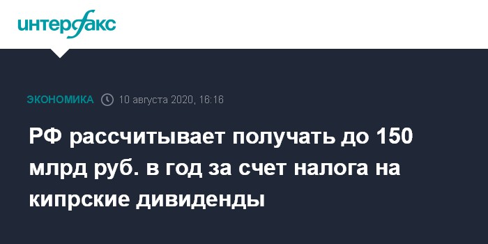 РФ рассчитывает получать до 150 млрд руб. в год за счет налога на кипрские дивиденды