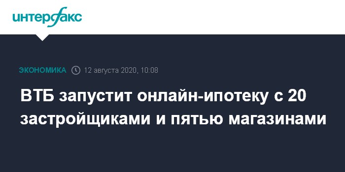 ВТБ запустит онлайн-ипотеку с 20 застройщиками и пятью магазинами