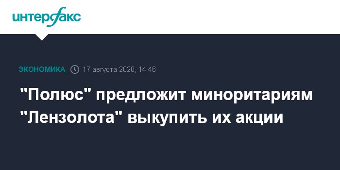 Москва. 17 августа. INTERFAX.RU - "Полюс" в лице компании "Полюс Красноярск" может предложить владельцам обыкновенных и привилегированных акций "Лензолота" выкуп их бумаг или обмен на акции самого ПАО "Полюс".