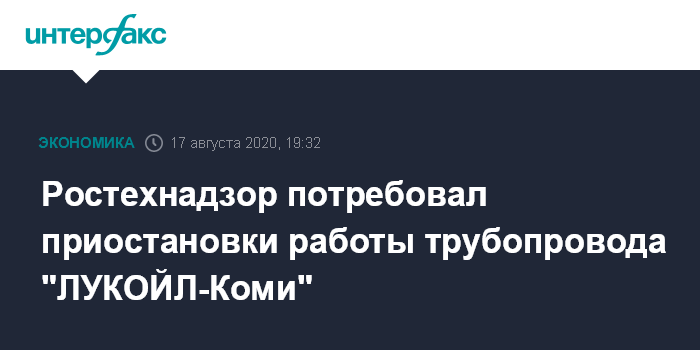 Москва. 17 августа. INTERFAX.RU - Печорское управление Ростехнадзора потребовало приостановить эксплуатацию трубопровода ООО "ЛУКОЙЛ-Коми" под Ухтой из-за нарушений.