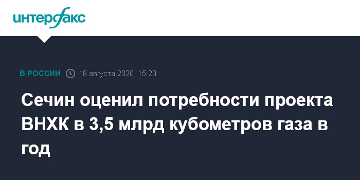 Сечин оценил потребности проекта ВНХК в 3,5 млрд кубометров газа в год