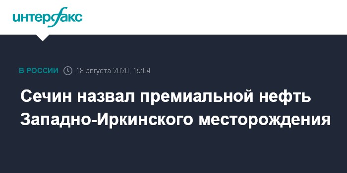 Сечин назвал премиальной нефть Западно-Иркинского месторождения
