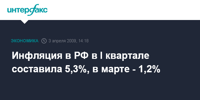 В прошлом году инфляция за тот же период составила 4,8%. Инфляция в марте этого года сравнялась с результатом за март 2008 г. и составила, по предварительным данным, 1,2%.