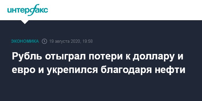 Москва. 19 августа. INTERFAX.RU - Доллар и евро растеряли рост и дешевеют на "Московской бирже" в среду вечером, рубль отыграл потери в ходе волатильных торгов и вновь повышается к бивалютной корзине благодаря улучшению ситуации на рынке нефти.