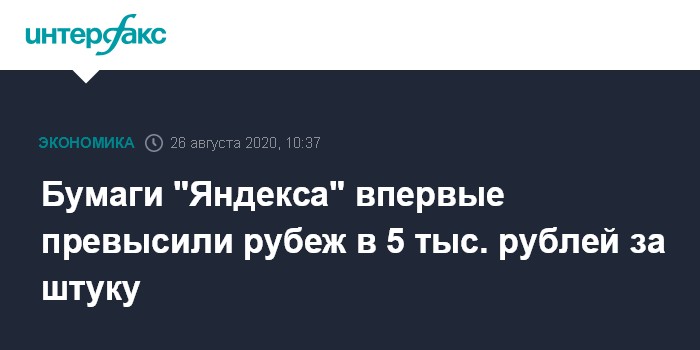 Бумаги "Яндекса" впервые превысили рубеж в 5 тыс. рублей за штуку