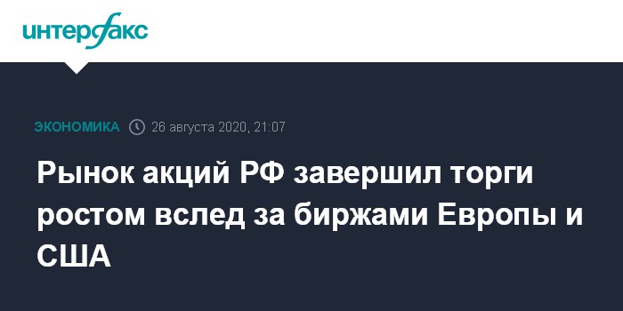Рынок акций РФ завершил торги ростом вслед за биржами Европы и США