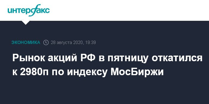 Москва. 28 августа. INTERFAX.RU - Рынок акций РФ в пятницу откатился в район 2980 пунктов по индексу МосБиржи из-за сокращения аппетита инвесторов к рисковым активам и укрепления рубля; выросли бумаги золотодобытчиков в качестве защитных активов в свете дорожающего золота.