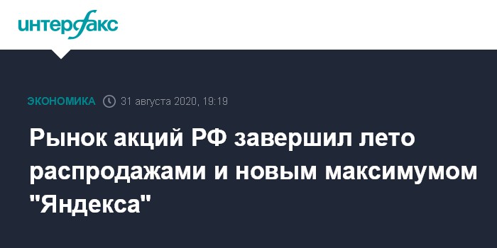 Рынок акций РФ завершил лето распродажами и новым максимумом "Яндекса"
