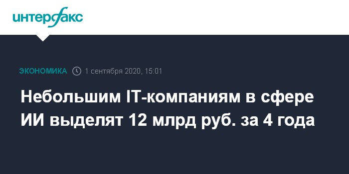 Небольшим IT-компаниям в сфере ИИ выделят 12 млрд руб. за 4 года