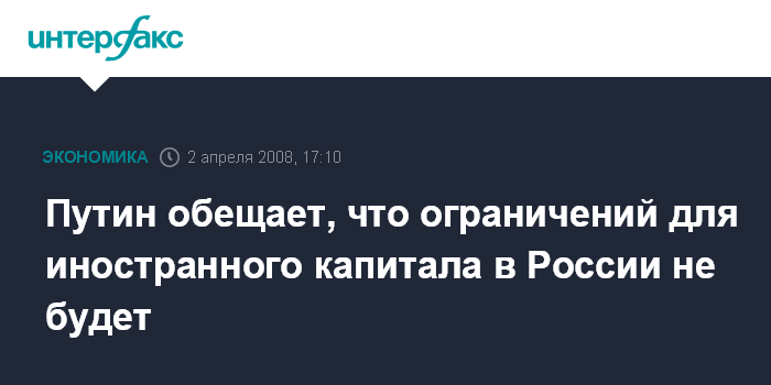Путин обещает, что ограничений для иностранного капитала в России не будет