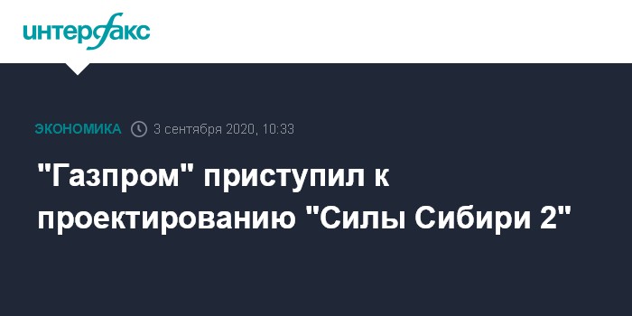 Москва. 3 сентября. INTERFAX.RU - "Газпром" приступил к проектированию магистрального газопровода "Силы Сибири 2", сообщил председатель правления компании Алексей Миллер на селекторе по случаю дня работника нефтяной и газовой промышленности.