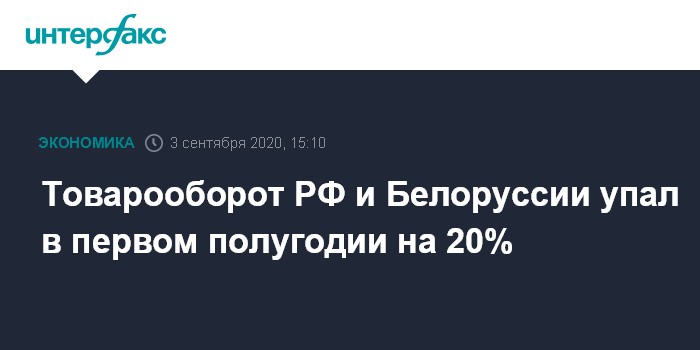Москва. 3 сентября. INTERFAX.RU - Россия и Белоруссия рассчитывают на восстановление объемов взаимной торговли, которая в первом полугодии текущего года снизилась более, чем на 20%. Об этом заявил премьер РФ Михаил Мишустин на переговорах с белорусским коллегой Романом Головченко.