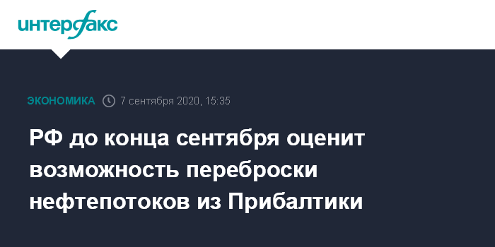 РФ до конца сентября оценит возможность переброски нефтепотоков из Прибалтики