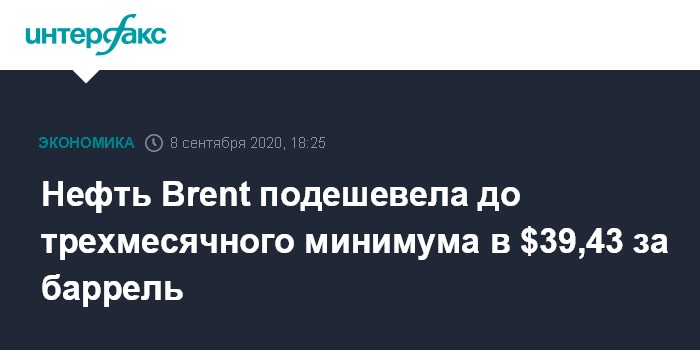 Нефть Brent подешевела до трехмесячного минимума в $39,43 за баррель