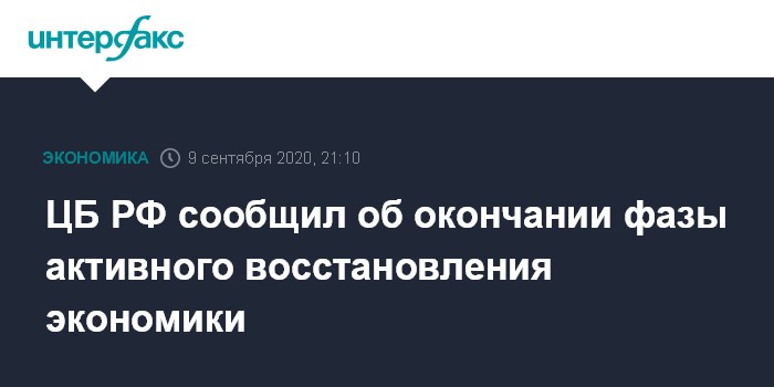 ЦБ РФ сообщил об окончании фазы активного восстановления экономики