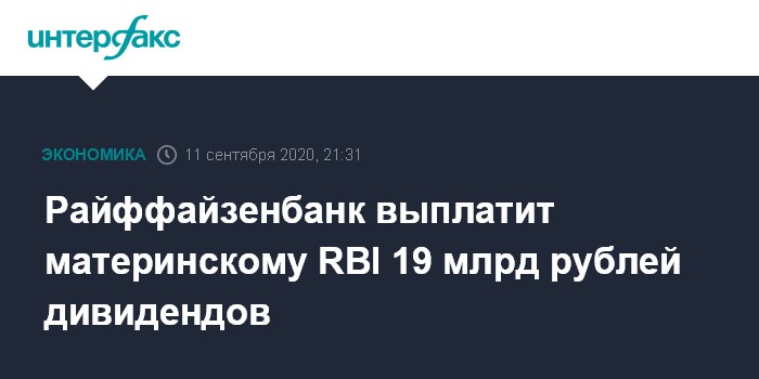 Решение принято материнским банком RBI, единственным акционером Райффайзенбанка. Дивиденды планируется выплатить до 30 сентября 2020 года.
