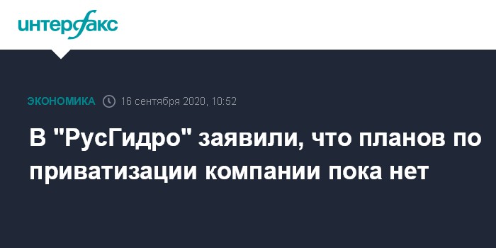 Москва. 16 сентября. INTERFAX.RU - Планов по приватизации ПАО "Русгидро" на данный момент нет, заявил в ходе онлайн-конференции с экспертами "Атона" член правления энергокомпании Андрей Казаченков.