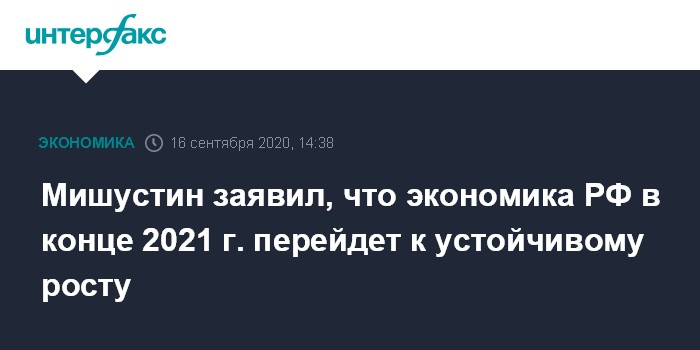 Москва. 16 сентября. INTERFAX.RU - Экономика РФ к концу 2021 года выйдет на траекторию устойчивого роста, сообщил премьер-министр РФ Михаил Мишустин на заседании правительства.