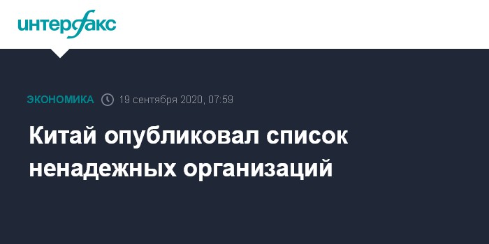 Москва. 19 сентября. INTERFAX.RU - Министерство торговли Китая опубликовало в субботу список ненадежных организаций, сообщило агентство "Синьхуа".