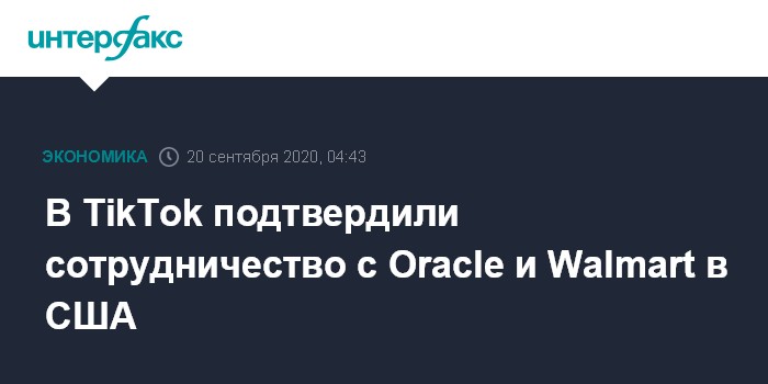 Москва. 20 сентября. INTERFAX.RU - В китайской компании TikTok рады, что ее договоренности с американскими Oracle и Walmart устранили причины для беспокойства властей США, связанные с национальной безопасностью, сообщается в твиттере команды по коммуникациям TikTok.
