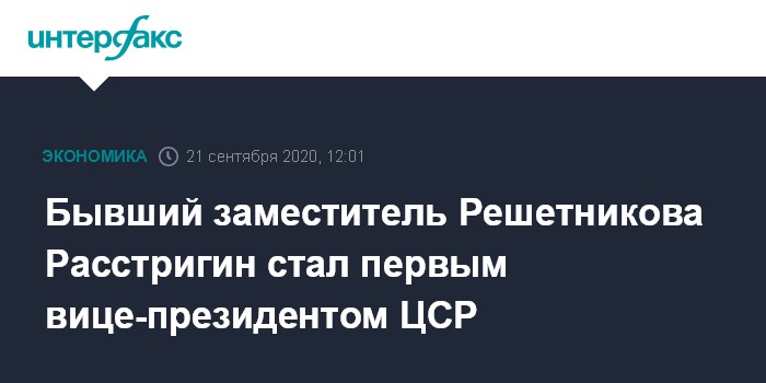 Бывший заместитель Решетникова Расстригин стал первым вице-президентом ЦСР