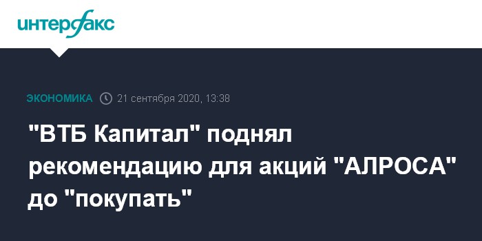 "ВТБ Капитал" поднял рекомендацию для акций "АЛРОСА" до "покупать"
