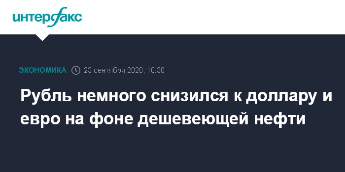 Москва. 23 сентября. INTERFAX.RU - Доллар и евро растут на Московской бирже в среду утром, рубль умеренно дешевеет к бивалютной корзине на фоне снижающейся нефти.