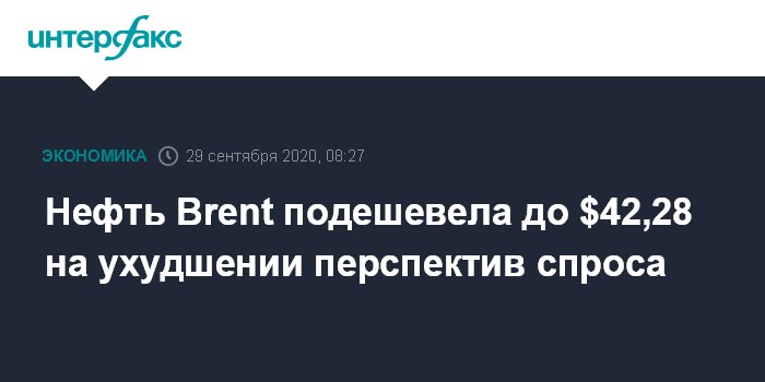 Нефть Brent подешевела до $42,28 на ухудшении перспектив спроса