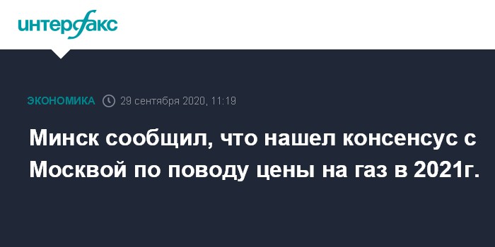 Минск сообщил, что нашел консенсус с Москвой по поводу цены на газ в 2021г.