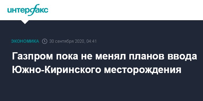 Москва. 30 сентября. INTERFAX.RU - "Газпром" пока не сдвигал срок ввода находящегося под секторальными санкциями США Южно-Киринского месторождения на шельфе Сахалина, сообщил журналистам член правления, начальник департамента 307 "Газпрома" Сергей Меньшиков в кулуарах форума "Нефть и газ Сахалина".