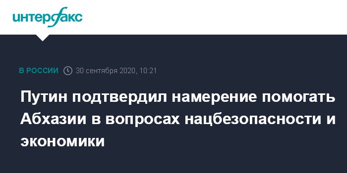 Путин подтвердил намерение помогать Абхазии в вопросах нацбезопасности и экономики