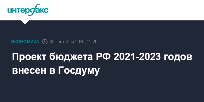 Москва. 30 сентября. INTERFAX.RU - Правительство РФ внесло в Госдуму проект федерального бюджета на 2021 год и плановый период 2022-2023 годов, распоряжение об этом подписал премьер-министр Михаил Мишустин, говорится в сообщении на официальном сайте правительства.