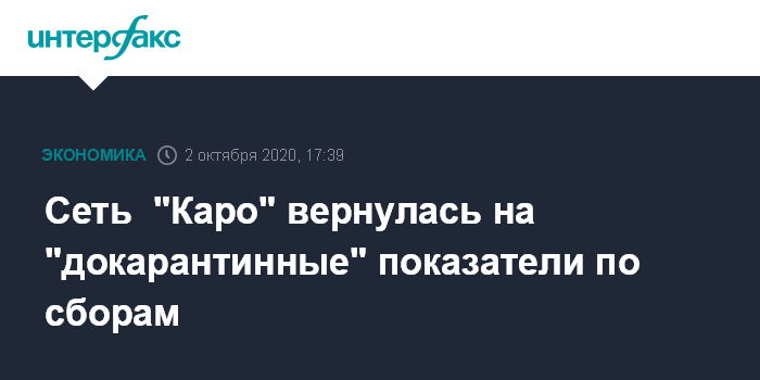 Сеть "Каро" вернулась на "докарантинные" показатели по сборам