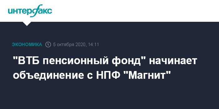 "ВТБ пенсионный фонд" начинает объединение с НПФ "Магнит"