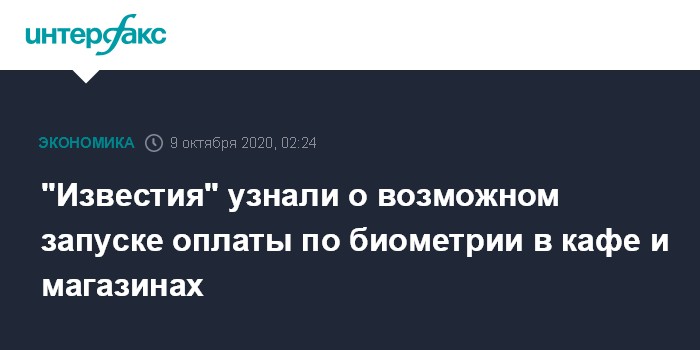 Москва. 9 октября. INTERFAX.RU - Закон, расширяющий возможности применения биометрии, планируют принять до конца 2020 года, это позволит банкам вводить в промышленную эксплуатацию оплату по лицу и голосу в магазинах и кафе, сообщает в пятницу газета "Известия".