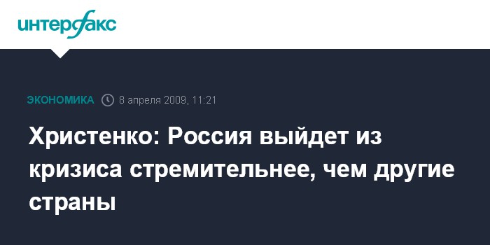 Москва. 8 апреля. INTERFAX.RU - Министр промышленности и торговли РФ Виктор Христенко считает, что Россия выйдет из финансово-экономического кризиса гораздо быстрее, чем другие страны.
