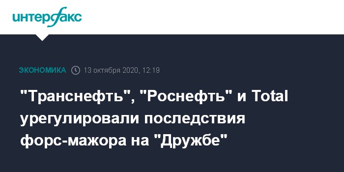 "Транснефть", "Роснефть" и Total урегулировали последствия форс-мажора на "Дружбе"