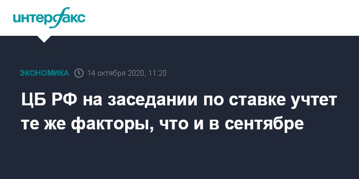 ЦБ РФ на заседании по ставке учтет те же факторы, что и в сентябре