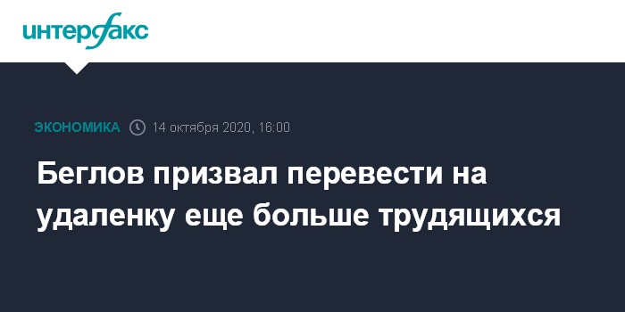 Москва. 14 октября. INTERFAX.RU - Губернатор Петербурга Александр Беглов призвал работодателей перевести на удаленную работу максимальное количество сотрудников. Он заявил об этом на Межведомственном городском координационном совете по борьбе с коронавирусом.