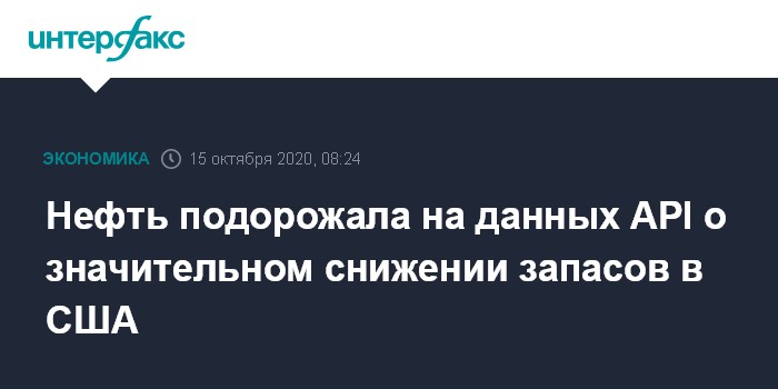 Американский институт нефти (API) в среду, 14 октября, сообщил, что запасы нефти в США на неделе, завершившейся 9 октября, упали на 5,4 млн баррелей. По данным API, запасы бензина сократились на 1,5 млн баррелей, дистиллятов - на 3,9 млн баррелей. Запасы нефти на терминале в Кушинге увеличились на 2,2 млн баррелей.