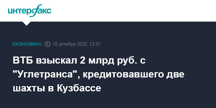 ВТБ взыскал 2 млрд руб. с "Углетранса", кредитовавшего две шахты в Кузбассе