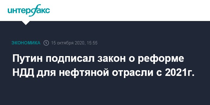 Путин подписал закон о реформе НДД для нефтяной отрасли с 2021г.