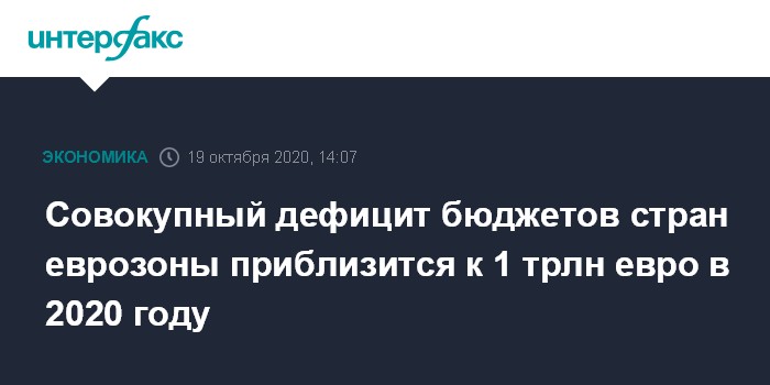 Москва. 19 октября. INTERFAX.RU - Совокупный дефицит бюджетов 19 стран еврозоны приблизится к 1 трлн евро в 2020 году в связи с крупными расходами государств на преодоление кризиса, вызванного пандемией COVID-19, пишет газета Financial Times.