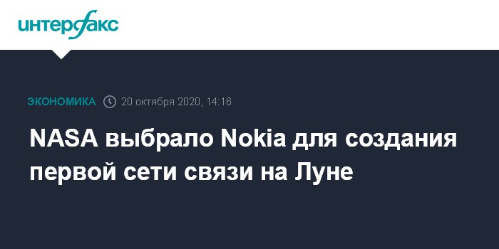 Москва. 20 октября. INTERFAX.RU - Финская Nokia Corp была выбрана партнером Национального управления США по аэронавтике и исследованию космического пространства (NASA) по созданию первой сети LTE на Луне.