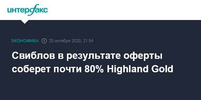 Свиблов в результате оферты соберет почти 80% Highland Gold