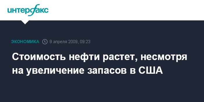Москва. 9 апреля. INTERFAX.RU - Стоимость нефти растет в четверг второй день подряд, несмотря на публикацию данных об увеличении коммерческих запасов нефти в США на прошлой неделе до максимального уровня с 1993 года, сообщило агентство Bloomberg.