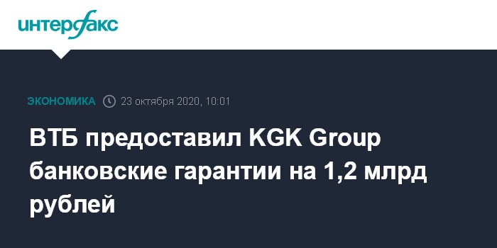 ВТБ предоставил KGK Group банковские гарантии на 1,2 млрд рублей