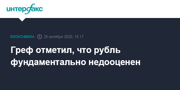 Москва. 25 октября. INTERFAX.RU - Курс рубля фундаментально недооценен, считает глава Сбербанка Герман Греф.