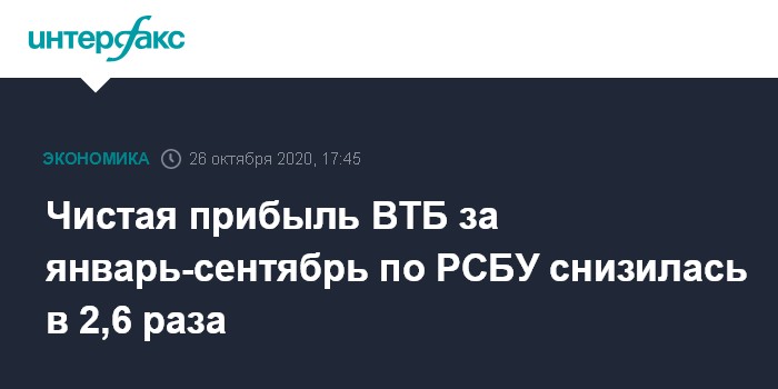 Чистая прибыль ВТБ за январь-сентябрь по РСБУ снизилась в 2,6 раза