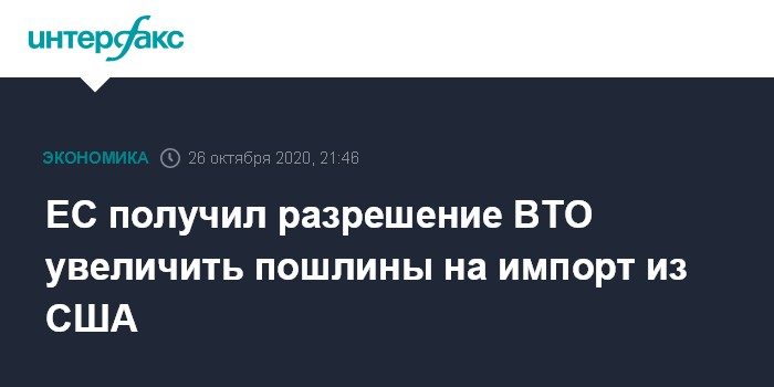 ЕС получил разрешение ВТО увеличить пошлины на импорт из США